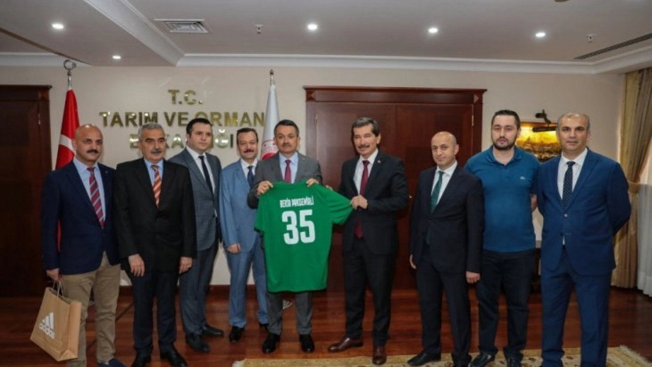 Tarım ve Orman Bakanı Bakanı Bekir Pakdemirli’yi makamında ziyaret eden Orman Gençlik ve Spor Kulübü Erkek Basketbol Takımı yöneticileri, Pakdemirli’ye üzerinde isminin yazılı olduğu 35 numaralı formayı hediye etti.