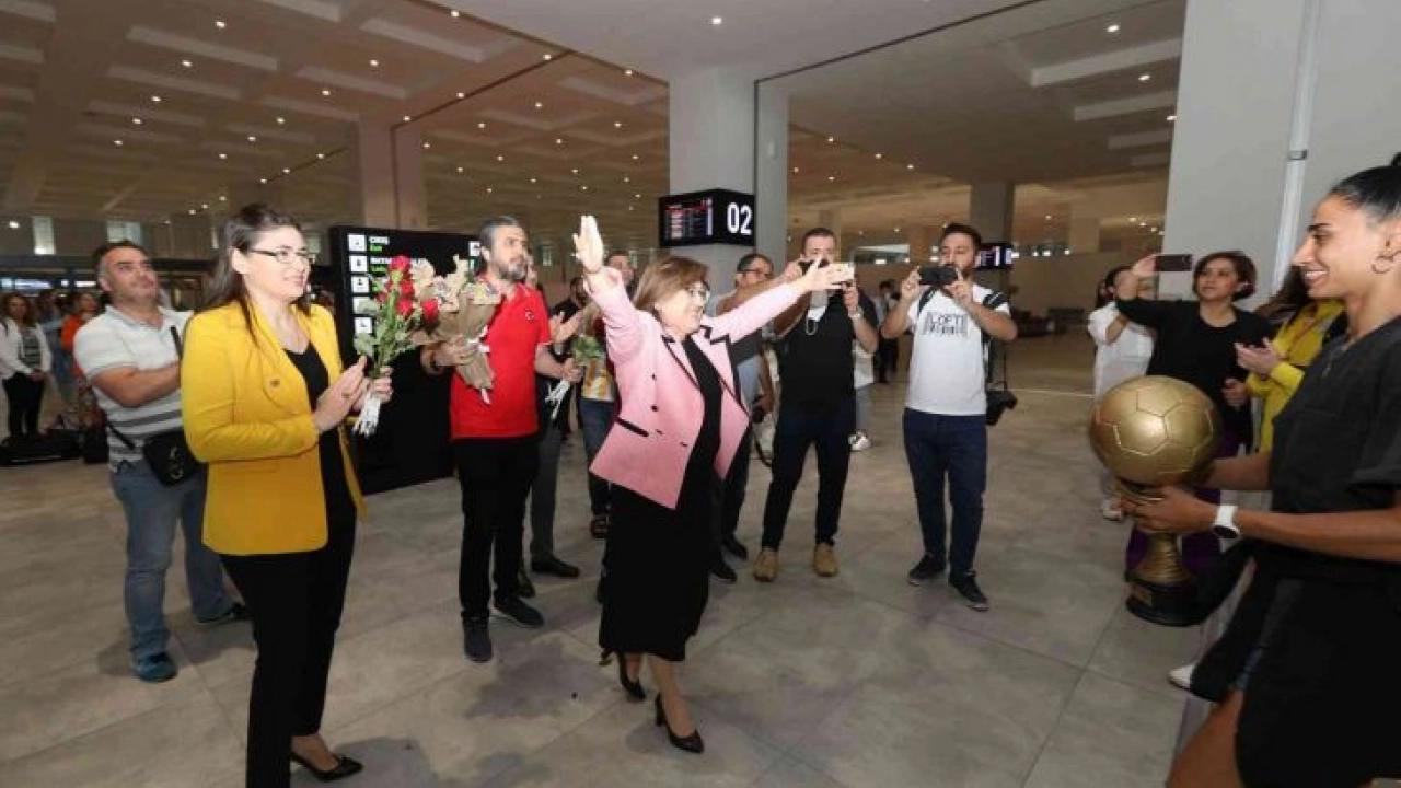 Turkcell Kadın Futbol Süper Ligi final karşılaşmasında Fatih Karagümrük’ü 2-1’lik skorla mağlup ederek kupanın sahibi olan ALG Spor, Gaziantep Büyükşehir Belediye Başkanı Fatma Şahin ve Gaziantep Valisi Davut Gül’ün eşi Gülden Gül tarafından çiçeklerle karşıladı.