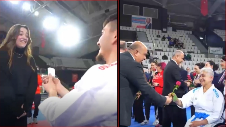 Şampiyonada Para Karate kategorisinde Türkiye Şampiyonu olan Berkay Uslu, kürsü sevincinin hemen ardından tatamiye yeniden çıkarak izleyenleri duygulandıran bir sürprize imza attı. Şampiyonluk coşkusunu salondaki sporcular ve izleyicilerle paylaşan Uslu, Ayşe’ye evlilik teklifinde bulundu.
