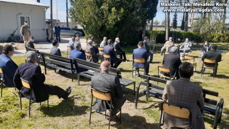 Adıyaman'ın Samsat ilçesinde kurum amirleri ile köy ve mahalle muhtarları toplantısı pandemi nedeni ile açık havada yapıldı.