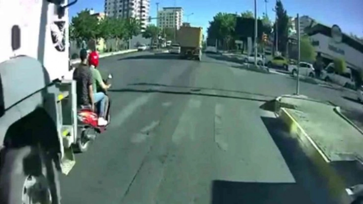 Yaşanan feci kaza hareket halindeki bir aracın kamerasına yansıdı. Görüntülerde iki kamyonun yolda ilerlediği, ilk kamyon geçtikten sonra ikinci kamyonun önünde seyreden motosiklete çarptığı görüldü. Motosiklet üzerindeki şahıslar yola savrulurken etraftaki vatandaşların yardıma koştukları gözlendi.