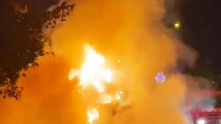 Şanlıurfa'nın Viranşehir ilçesinde seyir halindeki tır bir anda alev topuna dönerek alev alev yandı.