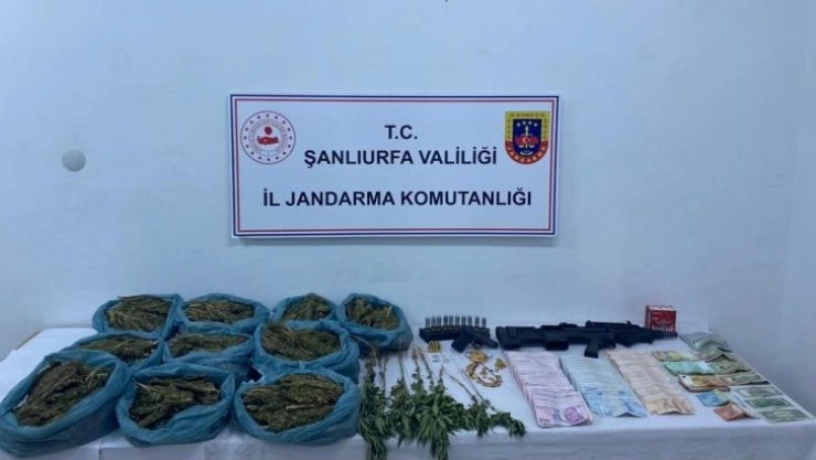 Edinilen bilgiye göre, Suruç İlçe Jandarma Komutanlığı Kaçakçılık ve Organize Suçlar Mücadele ekipleri, Cumhuriyet Başsavcılığı koordinasyonunda, Kesmecik Mahallesinde H.A.’nın evine operasyon düzenledi. Narkotik köpeğiyle yapılan aramada, bir ruhsatsız tabanca, bir av tüfeği, 65 mermi, 10 kök Hint keneviri, 5 gram metamfetamin ile bir miktar döviz ve altın ele geçirildi. Evin önündeki otomobilde ise 20 kilogram esrar ele geçiren ekipler, 3 şüpheliyi de gözaltına aldı.