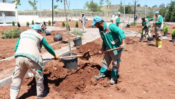 Şanlıurfa'da Haliliye İlçe Belediyesi tarafından yeni park yapım çalışmaları ile yeşil alan miktarı artırılırken, mevcut alanlarda ise yürütülen ağaç ve çiçek ekimleri ile daha da güzelleşiyor.