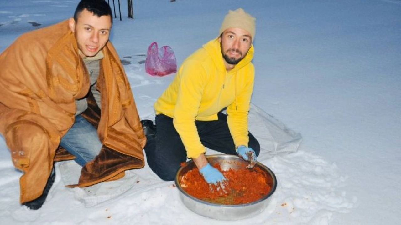 Şanlıurfalılar kar üstünde su yerine karla çiğköfte yoğurdu