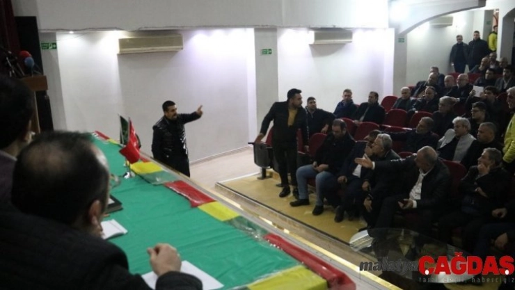 Maddi sıkıntılardan dolayı eski yönetimin toplu halde istifa edip valiliğin bir heyet atadığı Şanlıurfaspor’un ertelenen kongresi yapıldı. Büyük tartışmaların yaşandığı kongrede zaman zaman gerginlikler de ortaya çıktı. Kürsüye çıkarak siyasi bir konuşma yapan Şanlıurfaspor’un eski yöneticilerinden Mehmet Cafer’e salonda bulunan bazı kişiler tepki gösterdi.
