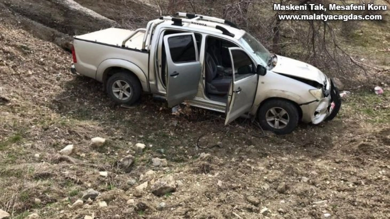 Adıyaman'ın Gölbaşı ilçesinde şarampole yuvarlanan kamyonet sürücüsü yaralandı.