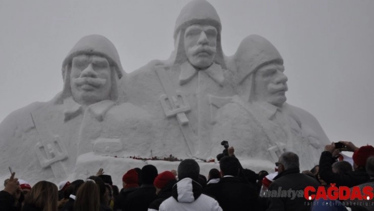 Sarıkamış'ta kardan şehit askerler heykelinin açılışı yapıldı.