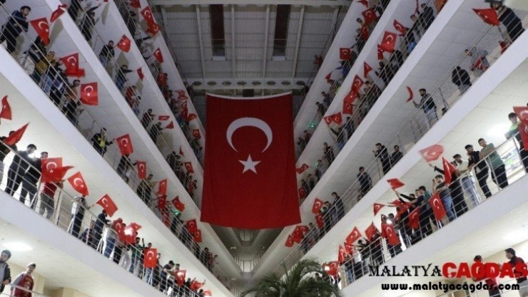 Karabük'te KYK yurtlarında kalan öğrenciler, Türk Silahlı Kuvvetleri'nin Suriye'de başlattığı 'Bahar Kalkanı' harekatına Türk Bayraklarıyla destek vererek dua etti.
