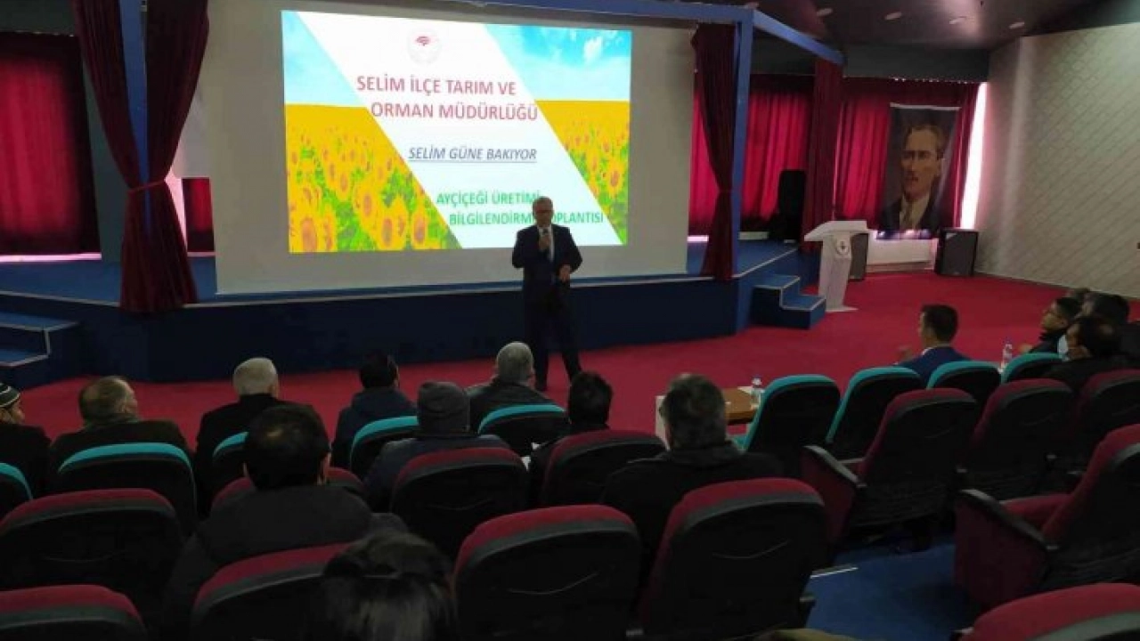 Selim’de, "Selim Güne Bakıyor " projesi kapsamında "Ayçiçeği Yetiştirciliği" üretici bilgilendirme toplantısı düzenlendi.