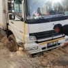 Tekirdağ’ın Kapaklı ilçesinde bir markete ürün getiren sevkiyat kamyonu, yolun çökmesi sonucu mahsur kaldı.