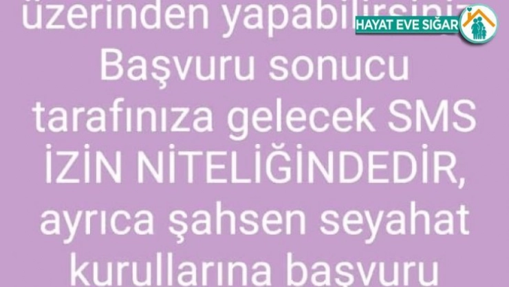 Şehirlerarası seyahat başvurularının Alo 199'a yapılacağı bildirildi.