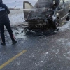Van'ın Çaldıran ilçesinde seyir halindeyken yanmaya başlayan kapalı kasa kamyonet, itfaiye ekipleri tarafından söndürüldü.