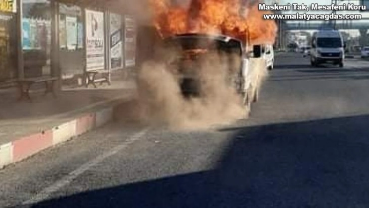 Malatya'da seyir halindeki bir minibüs alev aldı. Trafikte yaşanan panik anları ise vatandaşların cep telefonu kamerasına yansıdı.