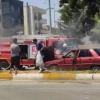 Adıyaman’da seyir halindeyken alev alan otomobil, itfaiye ekiplerinin çalışmaları neticesinde söndürüldü.