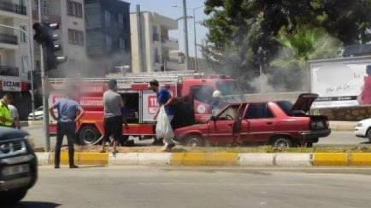 Adıyaman'da seyir halindeyken alev alan otomobil, itfaiye ekiplerinin çalışmaları neticesinde söndürüldü.