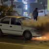 Adıyaman'da seyir halinde olan bir otomobil alev alev yandı.