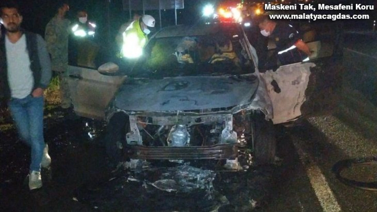 Malatya'da seyir halindeyken alev alan otomobil, kullanılmaz hale geldi.