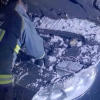 Van’ın Erciş ilçesinde seyir halindeki otomobilin yanan motoruna karla müdahale ettiler.