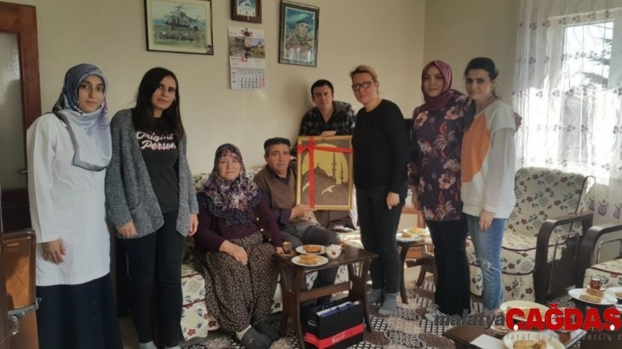 Şehit Kamil Üngör ortaokulu Müdiresi Yılmaz ve beraberindekiler getirmiş oldukları tabloyu şehit ailesine taktim ettiler.