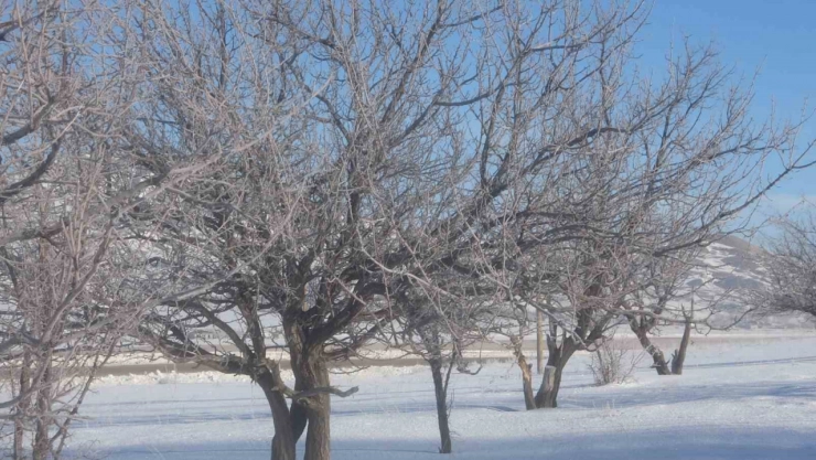 Dondurucu soğuklar, tabiatı adeta beyaz bir örtüyle süslerken, gece hava sıcaklığının gece sıfırın altında düşmesiyle ağaçlar kırağı tuttu.
