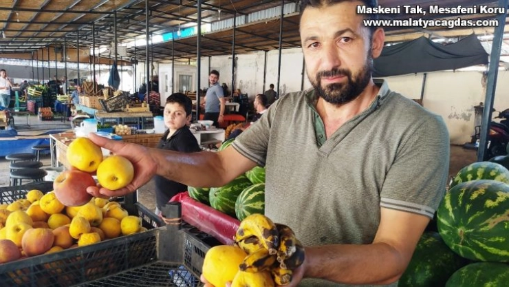 Pazar esnaflarından Ahmet Aslan, sıcak hava nedeniyle ürünlerinin çürüdüğünü belirterek, “Sıcak havaya bir şey dayanmıyor. Ürünlerimiz çürüyor. Daha çok yeşillik ürünlerini su ile serinletmeye çalışıyoruz. Diğer sebze ve meyve ürünleri çürüyor. Sabah pazara getirdiğimiz ürünler bile çürüyor. Sıcağa bir çözüm bulamıyoruz” dedi.