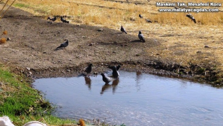 Sıcak havadan güvercinler de etkilendi. Sıcaktan bunalan ve bitkin düşen güvercinler, tarım sulama göletlerinde serinledi. Uzun süre küçük su göletlerine giren ve su içerek serinleyen güvercinler, daha sonra uçarak uzaklaştı.
