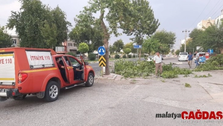 Adıyaman'da aniden bastıran şiddetli rüzgar nedeniyle bir çok ağaç gövdelerinden kırılarak devrildi.