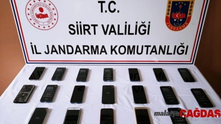 Siirt İl Jandarma Komutanlığı ekiplerince durdurulan bir araçta yapılan aramada piyasa değeri 40 bin lira olan toplam 16 adet cep telefonu ele geçirildi.