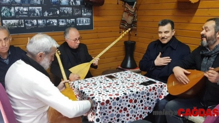 AK Parti Bursa Milletvekili Mustafa Esgin, Bursa’da bulunan Tarihi Köylü Pazarı’ndaki 65 yıllık Aşıklar Kahvesi’nde, saz çalıp, türkü söyleyen aşıkları dinledi.