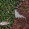 Ormanlık alana atılan lastiklerin kaldırılma çalışmaları drone ile görüntülendi.