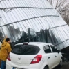 Silivri'de şiddetli rüzgarın etkisiyle bir iş yerinin çatısı park halindeki bir aracın üzerine uçtu. Araçta maddi hasar oluştu.
