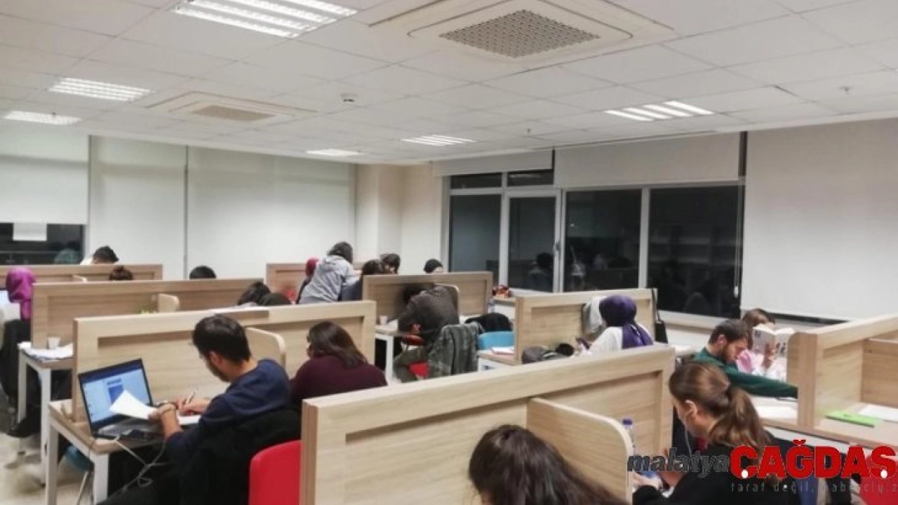 Bursa Büyükşehir Belediyesi’nin başlattığı ’sınav dönemlerinde 24 saat açık’ uygulamasıyla üniversitelilerin âdetâ akın ettiği Görükle Gençlik Merkezi’nde koridorlar bile ders çalışan öğrencilerle doldu.