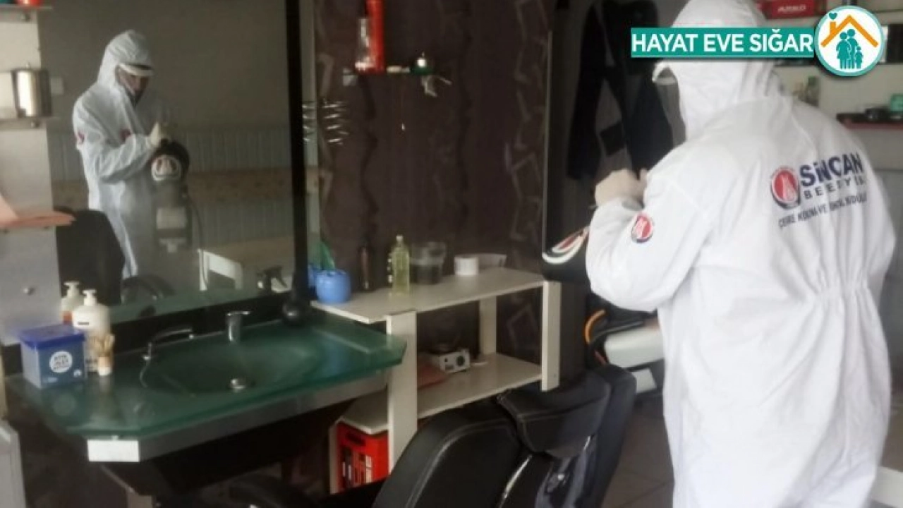 Sincan'da kuaför, berber ve güzellik salonları dezenfekte ediliyor