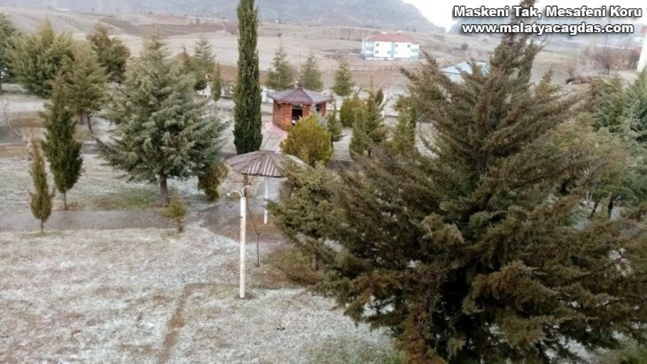 Adıyaman'ın Sincik ilçesinde etkili olan dolu yağışı her yeri beyaza bürüdü.