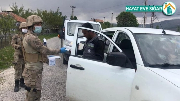 Adıyaman'ın Sincik ilçe Jandarma Komutanlığı tarafından korona virüs tedbirleri kapsamında vatandaşlara maske dağıtıldı.