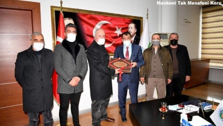 Şire Pazarı’nda Büyükşehir Belediyesi tarafından yapılan çalışmalar için teşekkür ziyaretine gelen Şire Pazarı Yönetiminde bulunan esnaflar, yapılan çalışmalar hakkında bilgiler aldı, Başkan Gürkan ile istişarelerde bulundular.