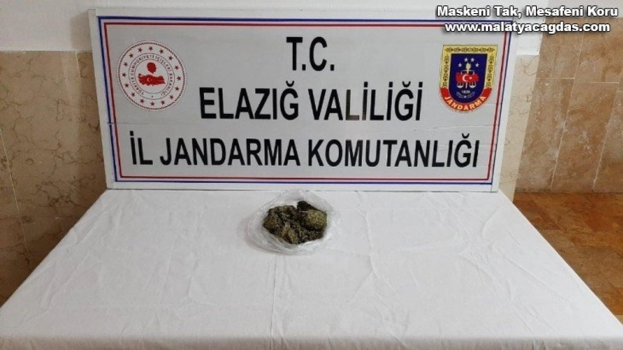 Elazığ’da jandarma ekiplerinin yaptığı çalışmada 1 şüpheli sırtına sardığı uyuşturucu madde ile yakalandı.