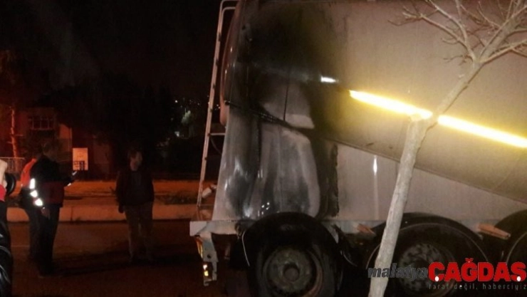 Şişirdiği lastik bir anda alev aldı, tır şoförü kazayı ucuz atlattı