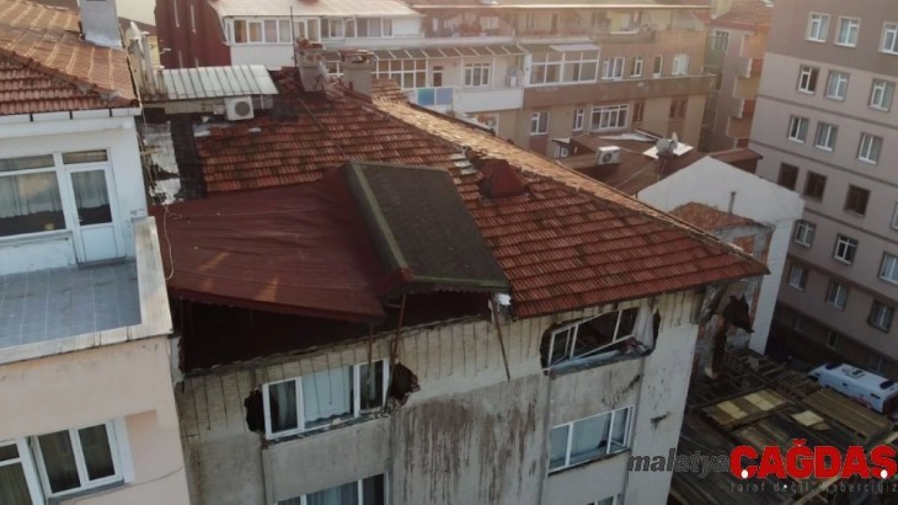Çatı katında yaşayan bir kişi, “Herkes uyuyordu. Yağmur suları oluğu çok fazla etkilediği için beton koptu. Yaralı yok” dedi.