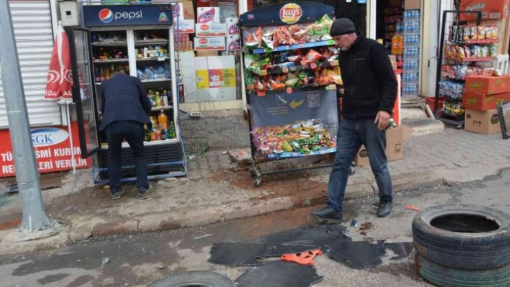 Market önünde bulunan tezgâhları yıkan ve markette hasara neden olan araçlarda da maddi hasar meydana geldi.