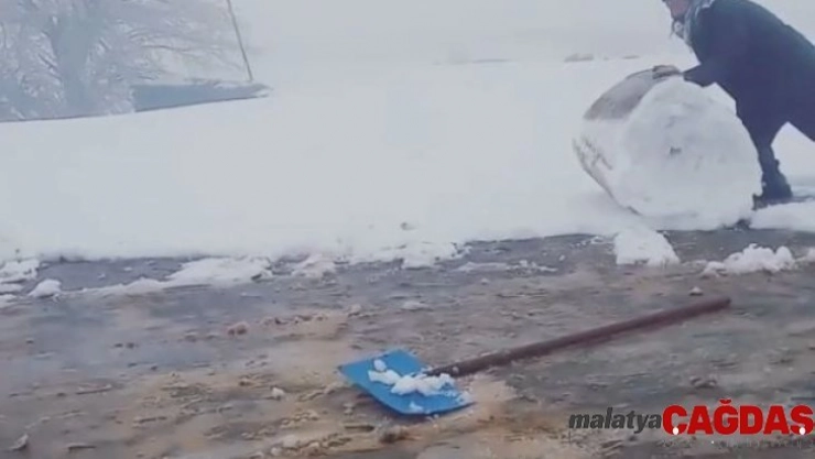 Şanlıurfa'nın Siverek ilçesinde bir vatandaşın damdaki karı kürek yerine kartopu yaparak temizlemesi görenleri hem şaşırta ve hem de gülümsetti.