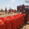 Tarlada işçiler tarafından toplanarak torbalara konulan soğanlar, kamyonlara yüklenerek pazara gönderiliyor.