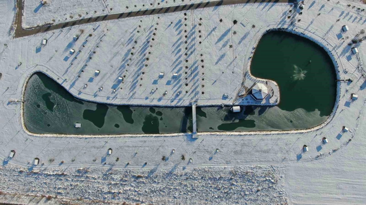 Yapay gölete giden Ali Aydın, kartpostallık görüntülerin olduğunu söyleyerek, "Şu anda Hasbahçe içerisinde bulunuyoruz. Yazın burası çok kalabalık oluyordu. Kışın da burası gerçekten çok güzel gözüküyor ve kartpostallık görüntüler var. Şu anda da gölet kısmen donmuş durumda. Hava gerçekten çok soğuk. Ördekler de göletin donmayan kısmında kalarak yüzüyorlar. Gölet buz tuttuğu için diğer taraflara geçemiyorlar. Çok farklı bir görüntü var" dedi.
