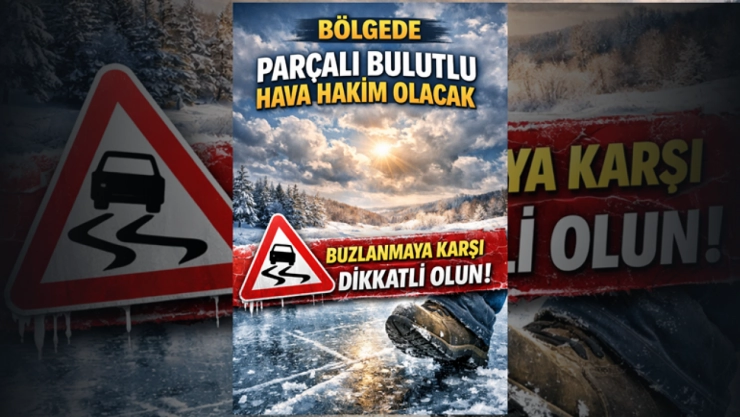 Bölgemiz genelinde hava parçalı bulutlu geçerken, sıcaklıklar mevsim normallerinin altında seyredecek. Kuzey ve batı yönlerden esmesi beklenen rüzgâr yer yer kuvvetli olurken, vatandaşlar buzlanmaya karşı uyarıldı.