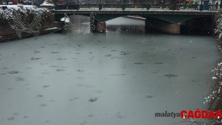 Eskişehir'de, gece saatlerinde başlayan ve etkisini arttırarak devam eden yoğun kar yağışı Porsuk Çayı'nın da yer yer buz tutmasına neden oldu.