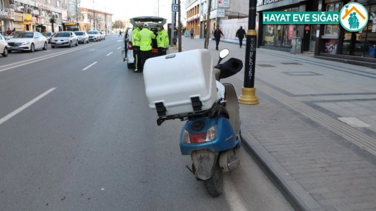 Kent merkezi İnönü Bulvarı üzerinde denetimler sırasında polis ekipleri bir motosikletli kurye durdu. Yapılan kontrollerde M.E. adındaki kuryenin 19 yaşında ehliyetsiz ve trafik yönünden bazı kusurların bulunduğu tespit edildi. Korona virüs tedbirleri kapsamında sokağa çıkma yasağı bulunan kuryeye sokağa çıktığı için kabahatler kanunu çerçevesine 392, trafik kusurları yönünden ise 7 bin 500 olmak üzere toplamda 7 bin 892 lira para cezası kesildi. Motosiklet trafikten men edilirken genç kurye ise dışarı çıkmaması konusunda ekipler tarafından uyarılarak evine gönderildi.