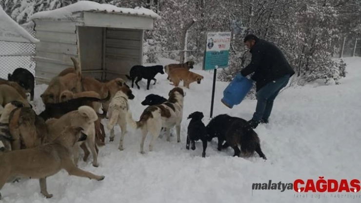 Kış döneminde de sahipsiz sokak hayvanlarının yanında olan Kütahya Belediyesi Sağlık İşleri Müdürlüğü, belirli alanlarda onlar için besleme noktası oluşturdu.