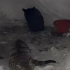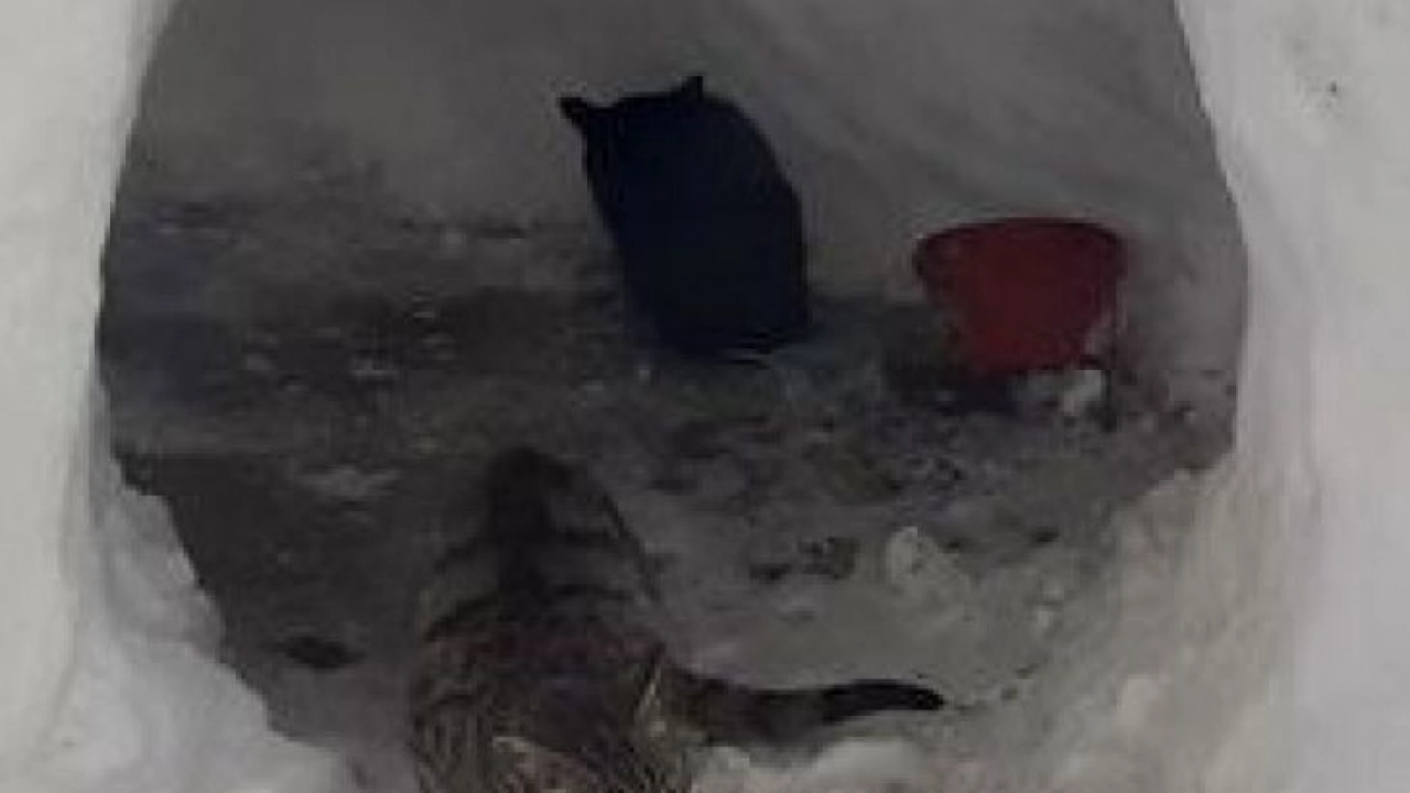 - Sokak kedileri için kardan ev yaptılar