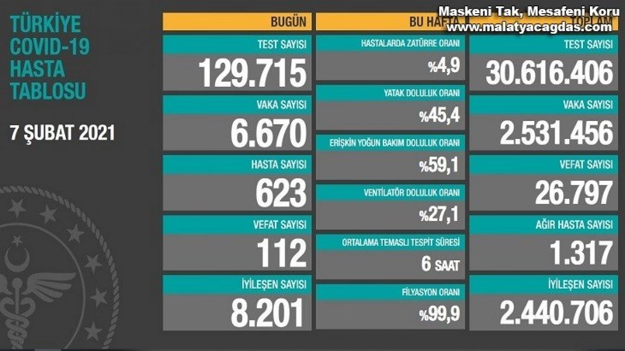 Sağlık Bakanlığı, son 24 saatte 112 kişinin korona virüsten hayatını kaybettiğini, 6 bin 670 yeni vaka sayısının olduğu açıkladı.